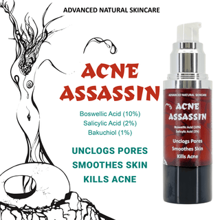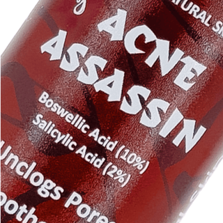 One of Acne Assassin's all-star ingredients is salicylic acid (2%), a natural, beta-hydroxy acid.  It's world-renown for unclogging pores and diminishing acne colonies. Salicylic acid seeps into the deepest layers of the skin eradicating dead skin cells, breaking up hardened sebum/keratin to unclog the pores.  Unclogged pores allow your skin's naturally produced sebum to escape to the outer layers of your skin instead of getting trapped underneath and forming a zit.